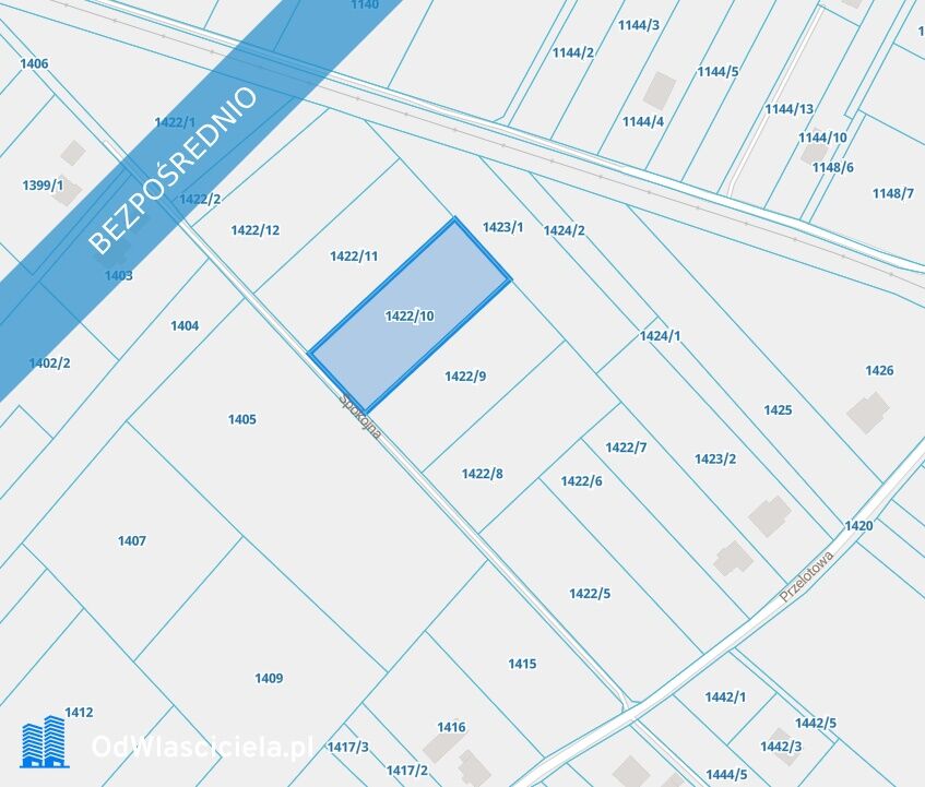 Do sprzedania działka rolna, położona w pobliżu nowych zabudowań, dojazd do działki bezpośrednio z ulicy asfaltowej oświetlonej. Na działce położona jest kanalizacja.Działka o numerze 1422/10